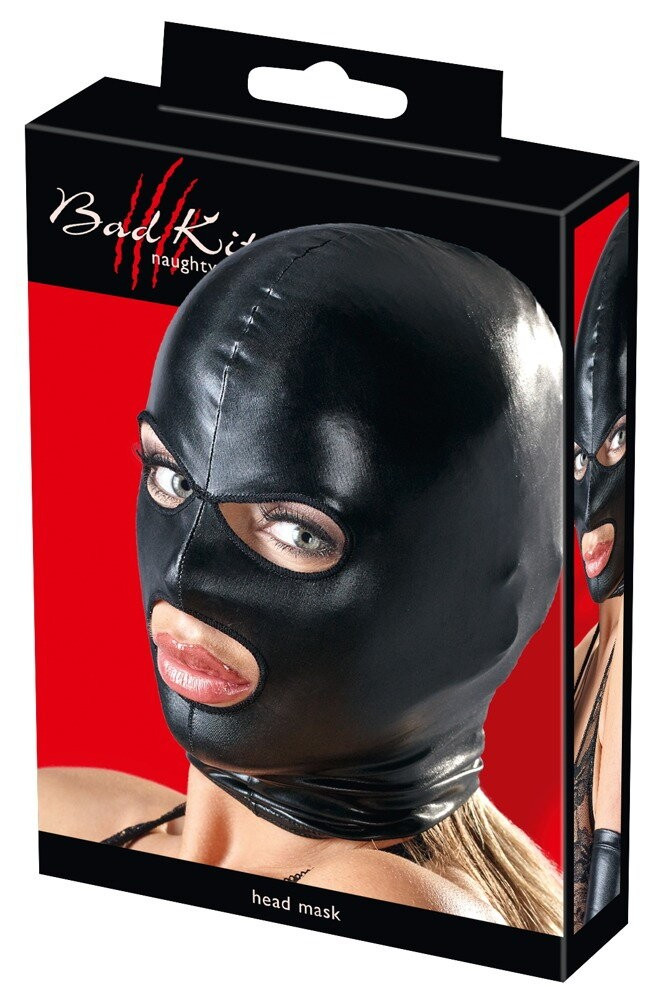 Éld át a titokzatos szerepjátékok izgalmát a Bad Kitty Mask Black 2 maszkkal! A fényes, fekete wet look anyag elegáns, mégis provokatív megjelenést kölcsönöz, miközben a szem- és szájnyílások szabad teret hagynak a kommunikációnak és a csókoknak. A rugalmas nyakrésznél elhelyezett varrások gondoskodnak arról, hogy a maszk tökéletesen illeszkedjen, így akár intenzív BDSM jeleneteknél is kényelmes viseletet biztosít.