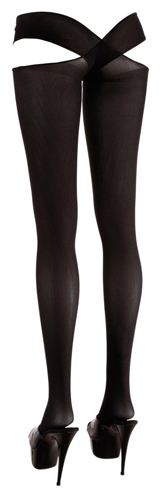 Merülj el a kihívó elegancia világában a Cottelli Collection keresztpántos harisnyájával! A fekete, áttetsző szövet finoman simul a lábadra, miközben a combnál futó rugalmas pántok látványos X-alakot rajzolnak, és minden mozdulatot szexi keretbe foglalnak. A két különálló résznek köszönhetően kreatívan variálhatod a viselést: hordhatod klasszikus combfixként, vagy magasra húzva a pántokat extra figyelemfelkeltő hatást érhetsz el. Puha, 100 % poliamid anyaga könnyed, mégis tartós, zárt lábujjrésszel a kényelmes viseletért.
