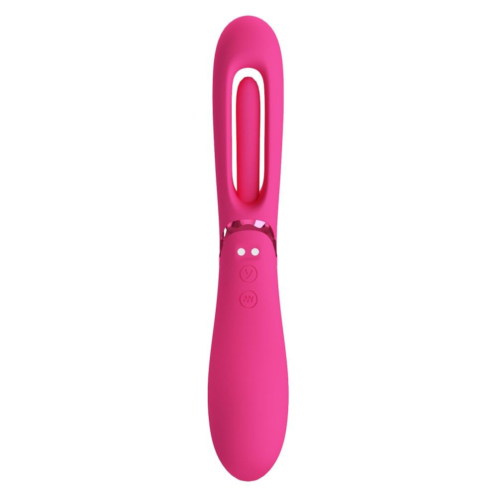 Ez a rugalmas, mégis stabil vibrátor két teljesen különböző élményt rejt egyetlen eszközben: a rezgés finomabb vagy lüktető impulzusai felkorbácsolják a vágyat, a forgó mozdulatok pedig mélyen masszírozzák a G-pontot. A selymes tapintású, hipoallergén szilikon pillanatok alatt felveszi a test hőmérsékletét, így természetes, kellemes érzést nyújt. A beépített akkumulátor hosszan bírja, a vízálló kialakítás pedig szabadságot ad a zuhany alatti játékhoz is.