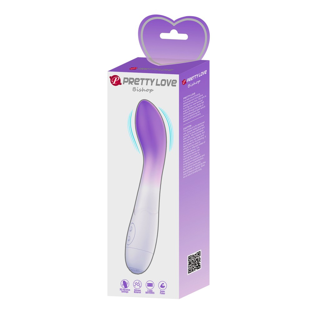 A Pretty Love Bishop Purple/White egy elegáns, lila–fehér vibrátor, amely prémium, puha szilikonból készült, így bársonyos érintést kínál. Enyhén ívelt, ergonómikus testével pontosan rátalál a G-pontra, de keskeny, kúpos csúcsa miatt biztonságos és izgalmas anális kalandokhoz is ideális. A mindössze 130 g-os eszköz 18 cm hosszú, 3,2 cm átlagos átmérővel, így kényelmesen kézben tartható, mégis telt stimulációt nyújt. Beépített motorja 30 különböző rezgésprogramot kínál, a lágy bizsergéstől a pulzáló extázisig. Teljesen vízálló kialakítása révén a kádban vagy zuhany alatt is magabiztosan használhatod, a működéshez csupán 2 × AAA elemre van szükség.