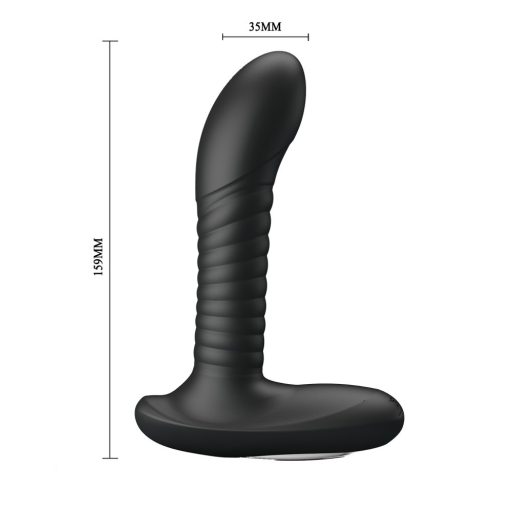 Kiváló minőségű anyagból készített, anatómiailag tökéletesen formált, memória funkciós, vibrátoros prosztata és perineum masszírozó, ideális íves kialakítással, tizenkét vibrációs, három forgási funkcióval, kiszélesedő talppal a biztonságos behatolásért.