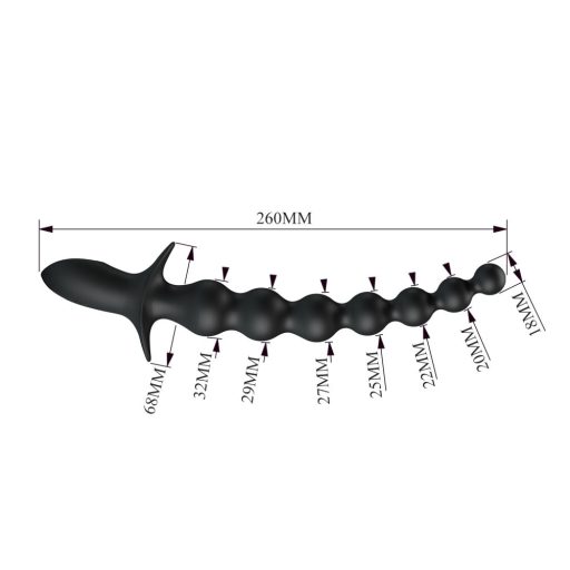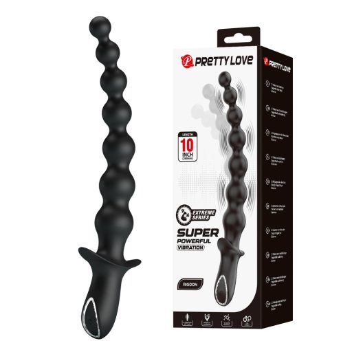 Fokozatos, rezgéssel fűszerezett anális élményre vágysz? A Pretty Love Rigdon 26 cm-es, prémium szilikonból készült gyöngysora hét, 3–3,4 cm átmérőjű, sima felszínű gömböt rejt. Rugalmas tengelye alkalmazkodik a test vonalaihoz, míg a biztonságos fogantyú stabil kontrollt nyújt be- és kihúzás közben. A beépített akkumulátor meghajtású motor 10 különböző vibrációs üzemmódot kínál, így a lágy bizsergetéstől a mély pulzálásig minden igényre találhatsz megfelelő ritmust. Uniszex kialakítása miatt nők és férfiak is felfedezhetik vele az anális örömök sokszínűségét.