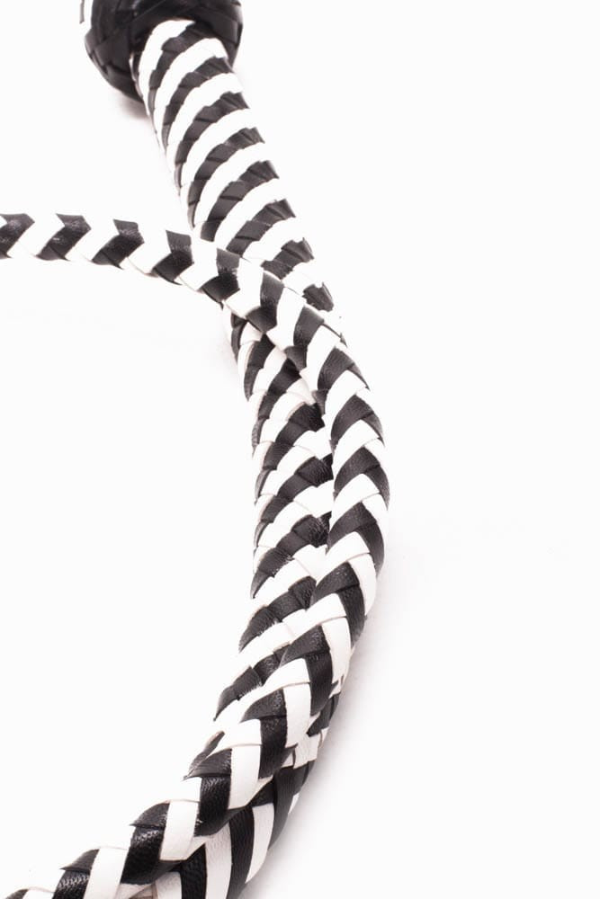 Éld át a dominancia és alávetés izgalmát a Heavy Handle Whip zebra mintás bőr korbáccsal! A 122 cm-es, rugalmas szálakkal szerelt ostor elegáns fekete-fehér csíkjaival már a látványával is felkorbácsolja a vágyat, miközben strapabíró, valódi bőr anyaga hosszan tartó élvezetet garantál. Masszív, súlyozott markolata stabil fogást biztosít, így pontosan irányíthatod az ütés erejét és ritmusát – gyengéd simításokhoz és határozott csattanásokhoz egyaránt.