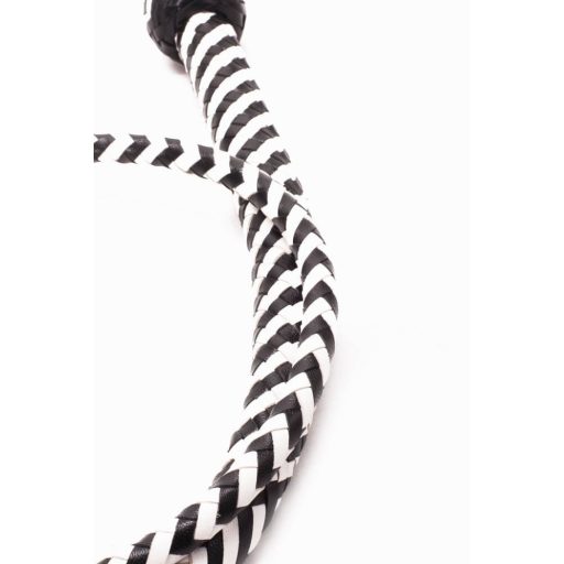 Hosszú, 122 cm-es teste kellő lendületet és rugalmasságot ad, hogy minden suhintás élesen, mégis kontrolláltan érjen célba. A súlyozott nyél kényelmesen simul a tenyérbe, így akár hosszabb játék alatt sem fárad el a kéz. A valódi bőr szálak különleges, csiklandozó-csattanó érintést kínálnak, a kontrasztos zebra minta pedig vizuálisan is fokozza az izgalmat, legyen szó intim hálószobai szerepjátékról vagy profi stúdiókörnyezetről.