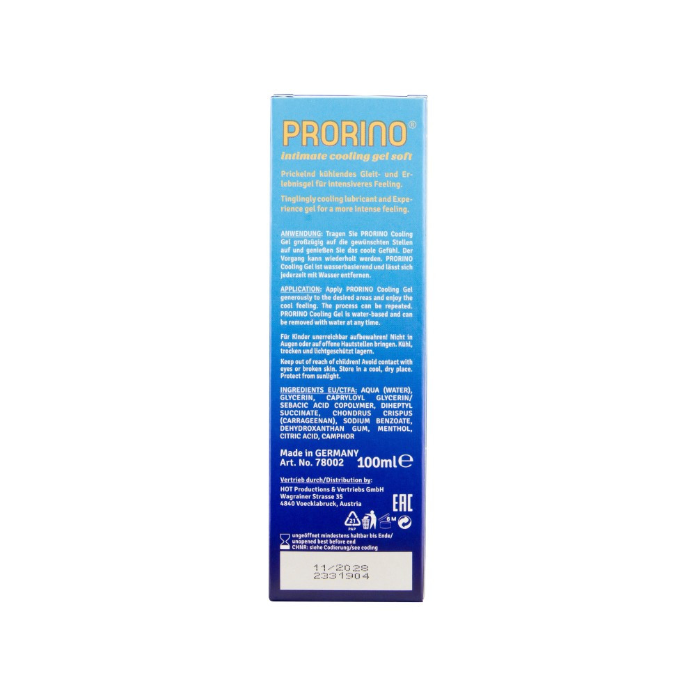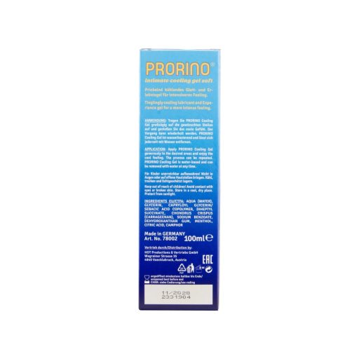 Éld át a hűsítő kényeztetés élményét a PRORINO Cooling Gel „soft” vízbázisú síkosítóval! A 100 ml-es kiszerelésű intim gél lágy mentolos frissességet kölcsönöz, miközben selymesen siklik a bőrön. Színezékmentes formulája nem hagy foltot az ágyneműn, vízzel pillanatok alatt leöblíthető. Nem ragad, és optimális hozamának köszönhetően egy kevés is bőségesen elég a zavartalan, élvezetes együttlétekhez – legyen szó páros vagy szóló használatról.