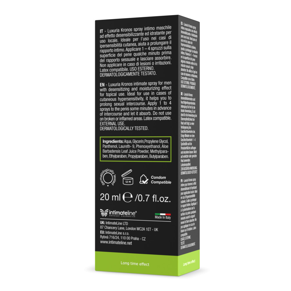 A Kronos Delay 20 ml férfi késleltető spray diszkrét, könnyen adagolható megoldás a túlérzékeny makk nyugtatására. Az aloe vera és a panthenol hidratáló kombinációja kényezteti a bőrt, míg a gyengéd érzéstelenítő komponensek mérséklik a kellemetlen ingereket. Kompakt flakonja elfér a neszesszerben, pumpás fejének köszönhetően pedig pontosan oda juttathatod a hatóanyagot, ahol szükség van rá – felesleges csepegés és illatfelhő nélkül.