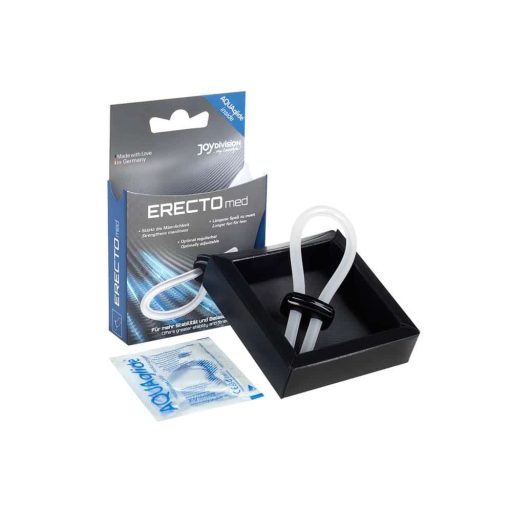Állítható péniszgyűrű, Joydivision, ERECTOmed Ring, 4,5 cm max. átmérő, 19 cm teljes hossz, színtelen, orvosi szilikon, vízálló, gombos méretállítás