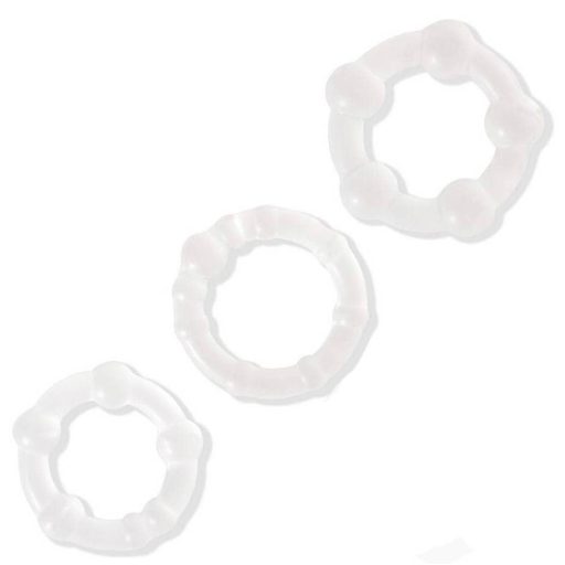 • 3 db áttetsző, gyöngysoros péniszgyűrű különböző méretekben