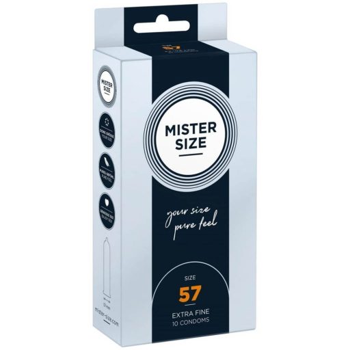 • 10 db Mister Size 57 mm ultravékony, síkosított óvszer, egyenként fóliázva