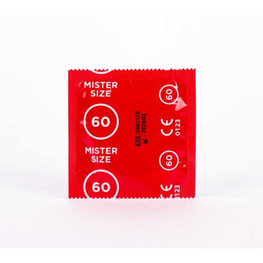 • 1 db Mister Size 60 mm ultra-vékony, síkosított óvszer (egyedi csomagolásban)