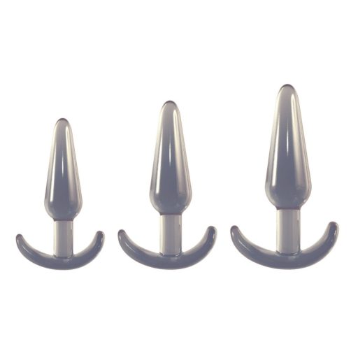 A három különböző méretű dugó segítségével könnyedén megismerheted, majd fokozhatod az anális stimulációt, anélkül hogy új eszközre lenne szükséged. A kúpos csúcs megkönnyíti a bevezetést, a kiszélesedő talp pedig biztonságosan a helyén tartja a játékszert. A rugalmas, bőrbarát TPE anyag tökéletesen alkalmazkodik a testhőhöz, míg a diszkrét füstszín stílusos megjelenést kölcsönöz. Kompakt méretüknek köszönhetően könnyedén elférnek a fiókban vagy utazótáskában is.