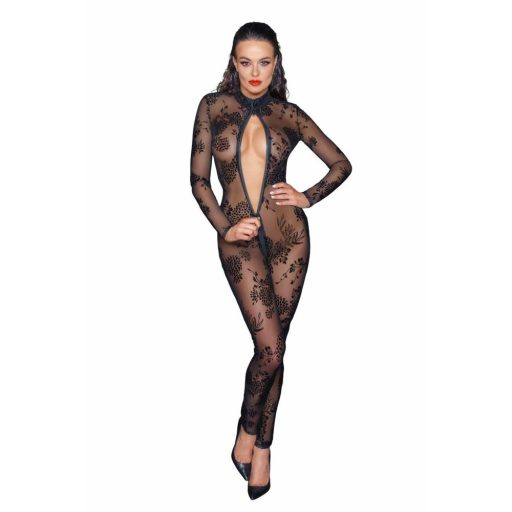 A rugalmas tüll olyan, mint egy második bőr: követi a test vonalait, nem szorít, mégis feszes tartást ad. A háromirányú cipzár kreatív nyitási lehetőségekkel kényeztet – felülről, alulról vagy akár középről is húzható, így te döntöd el, mennyit társz fel magadból. A fekete szín optikailag karcsúsít, a hosszú ujj és lábszár pedig elegáns, kifinomult hatást kelt, amitől minden mozdulatod magabiztosan erotikus lesz.