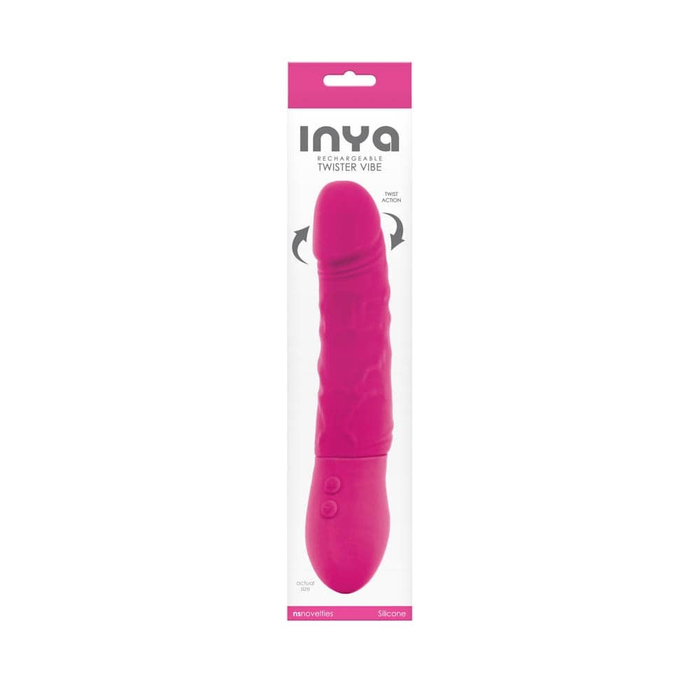 Az INYA Twister Pink egy élvonalbeli, orvosi minőségű szilikonból készült vibrátor, amely 7 rezgőprogrammal, 7 sebességi fokozattal és két, egymással ellentétes forgásiránnyal kényeztet. Az ergonomikus, enyhén ívelt test és az erezett felület célzottan a G-pontodat stimulálja, miközben a csavaró mozgás és a rezgések kombinációja mély, pulzáló élményt garantál. Újratölthető akkumulátora hosszan tartó használatot tesz lehetővé, a diszkrét kialakítás pedig egyszerű kezelhetőséget biztosít.