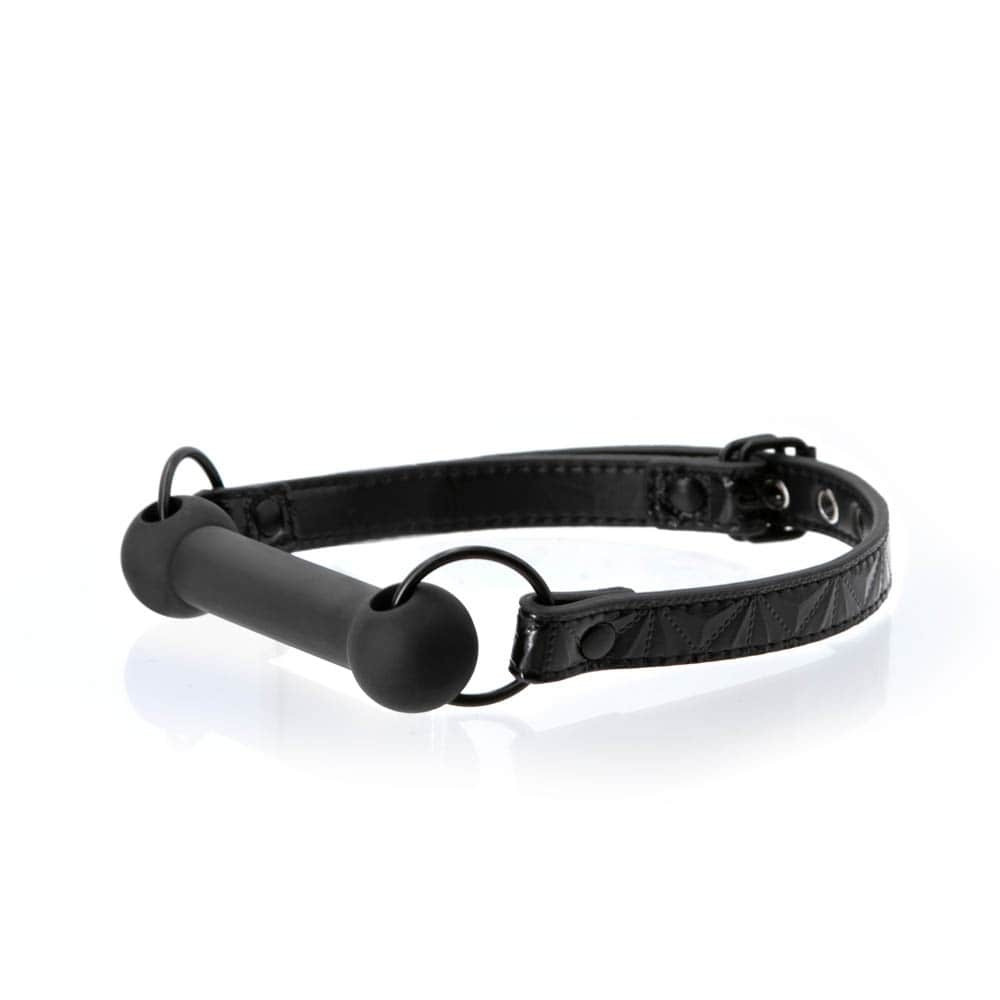 Rúd szájpecek, NS Toys, Sinful Bar Gag, 2,5–2,9 cm, fekete, vinil, állítható méretű pánt, szájba helyezhető BDSM fétis kiegészítő