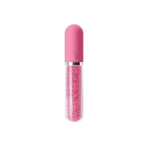 Üveg vibrátor, Loverzzz, Stardust Charm, 16–20 cm, rózsaszín, akkumulátoros, vízálló, bórszilikát üveg, mozgó Swarovski kristályok, 10 rezgésmód