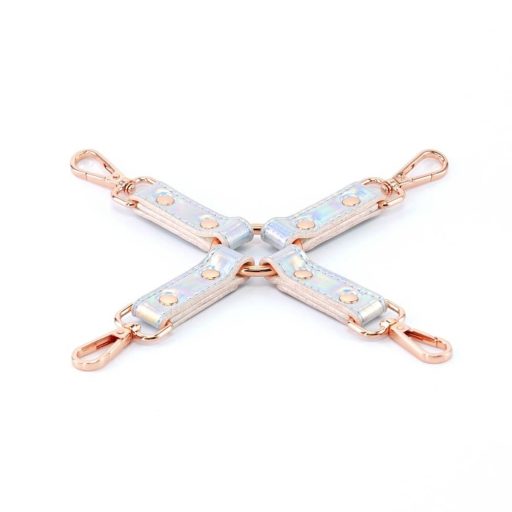 A négy, különböző irányba álló karabiner egyetlen mozdulattal zárja a végtagokat a középponti gyűrűre, így stabil, mégis gyorsan oldható pozíciót hoz létre. A vinyl pántok tartósak és könnyen tisztíthatók, színeik pedig dekoratív látványt adnak a dominancia-játékoknak. Állítható 21–25 cm-es hosszúságuk révén a legtöbb testalkathoz illeszkednek, a lekerekített élek pedig minimalizálják a bőrirritációt, hogy a fókusz a közös élményen maradjon.