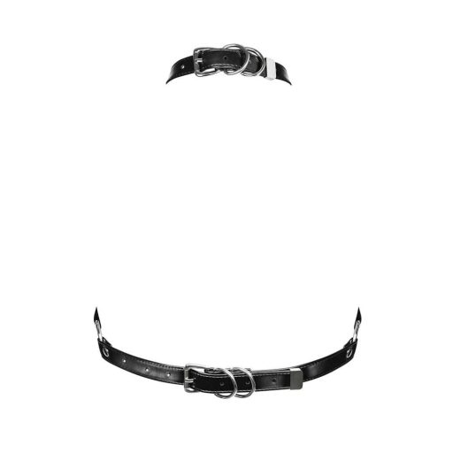 Teljesen nyitott kialakítása szabadon hagyja a melleket, így kombinálható kedvenc pastie-iddel vagy akár pucér bőrrel is, attól függően, mennyire szeretnél merész lenni. A nem nyúló, mégis puha műbőr stabilan simul a testhez, a fém csatok pedig gyors és precíz méretállítást tesznek lehetővé. Az eredmény: rendkívül szexi, domináns megjelenés, amely kényelmes marad akár hosszabb viselés során is.