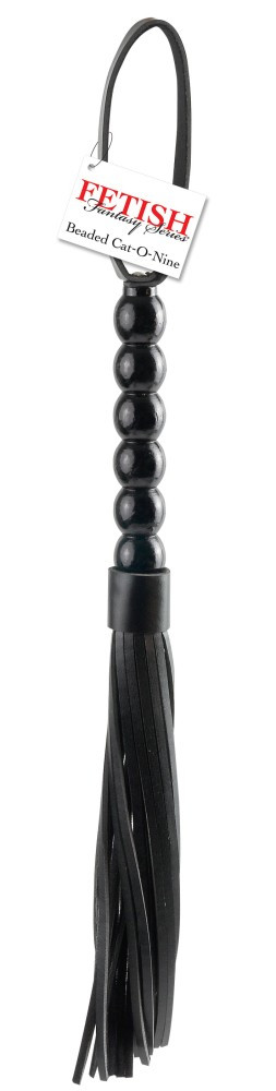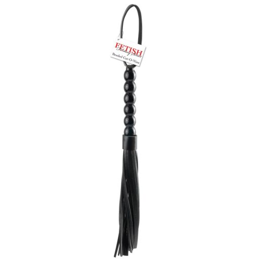 Kilencfarkú korbács, Pipedream, Fetish Fantasy Series Beaded Cat-o-Nine Tails, 36-40 cm, fekete, vinyl, gyöngyszemes, csuklópánttal