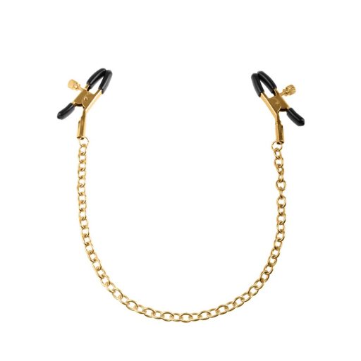Mellcsipesz, Pipedream - Fetish Fantasy Gold, Chain Nipple Clamps, 16–20 cm, arany-fekete, állítható szorítású, láncos, PVC, erotikus