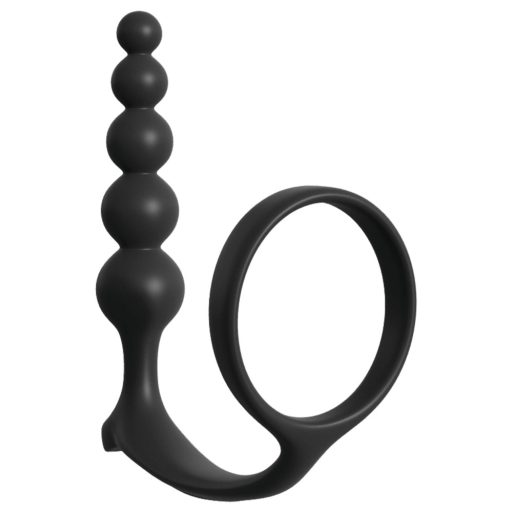 Anál golyósor, Pipedream, Anal Fantasy Collection Ass-Gasm Cockring, 11–15 cm, fekete, szilikon, vízálló, péniszgyűrűvel, 5 golyós, 4,5 cm gyűrű