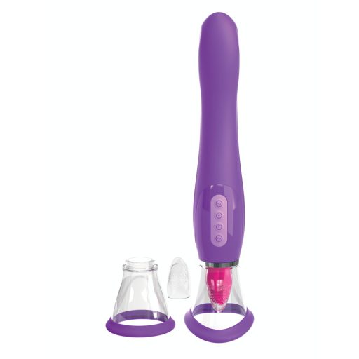 Csiklóizgató és G-pont vibrátor, Pipedream Fantasy For Her, Her Ultimate Pleasure, 21-25 cm, lila, akkumulátoros, vízálló, szívó- és nyalófunkciós