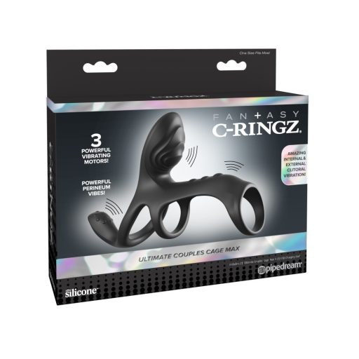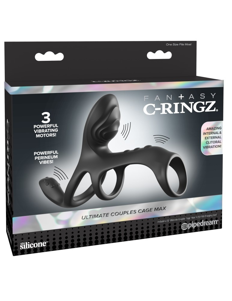 Szabadítsd fel a páros gyönyör minden rezdülését az Ultimate Couples Cage Max-szel! A fekete, prémium ABS anyagból készült, péniszre és herére egyaránt felcsúsztatható gyűrű tripla motorjával lüktető erővel öleli körbe az intim zónákat. 3 sebesség és 7 vad rezgésminta közül választhatsz, miközben a kettős csiklókar belülről és kívülről egyszerre kényezteti partneredet, a gáton pedig extra vibráció gondoskodik a viselő extázisáról.