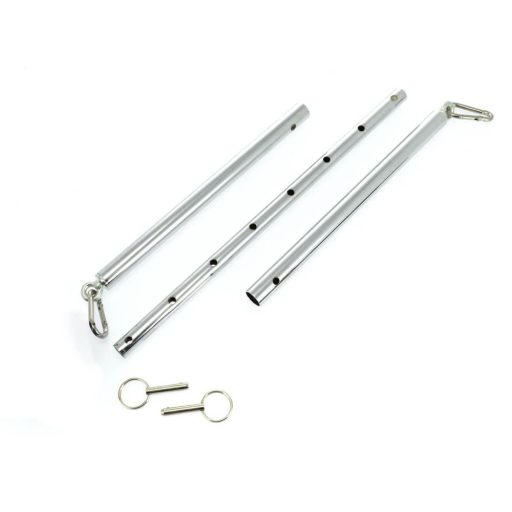 Érezd a korlátlan fantázia izgalmát a Rimba Spreadbar Metal állítható távtartórúddal! Az ezüstösen csillogó, masszív fém rúd 0,65 kg-os súlya stabil, megbízható alátámasztást nyújt akkor is, ha intenzívebb bondage-jelenetekre vágysz. A két végén található rögzítési pontokhoz pillanatok alatt csatlakoztathatod kedvenc kéz- vagy bokabilincseidet, így szabályozhatod a partnered pozícióját és kiszolgáltatottságát. A fokozatosan állítható hossz révén könnyedén testre szabhatod a terpesz szélességét.