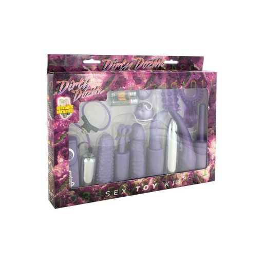 Egyetlen dobozban mindent megtalálsz, ami a kreatív gyönyörhöz kell: a Seven Creations Dirty Dozen szexjáték szett lila színben érkezik, és magában foglal egy 13 cm hosszú, 2,5 cm átmérőjű vibrátort, stimuláló péniszköpenyt, állítható péniszgyűrűt és klasszikus gésagolyókat. A rugalmas, mégis tartós PVC anyag kényelmes érintést biztosít, míg a 3 db AA elem folyamatos, szabályozható rezgést nyújt. Uniszex kialakítása révén ideális pároknak és önkényeztetéshez is.