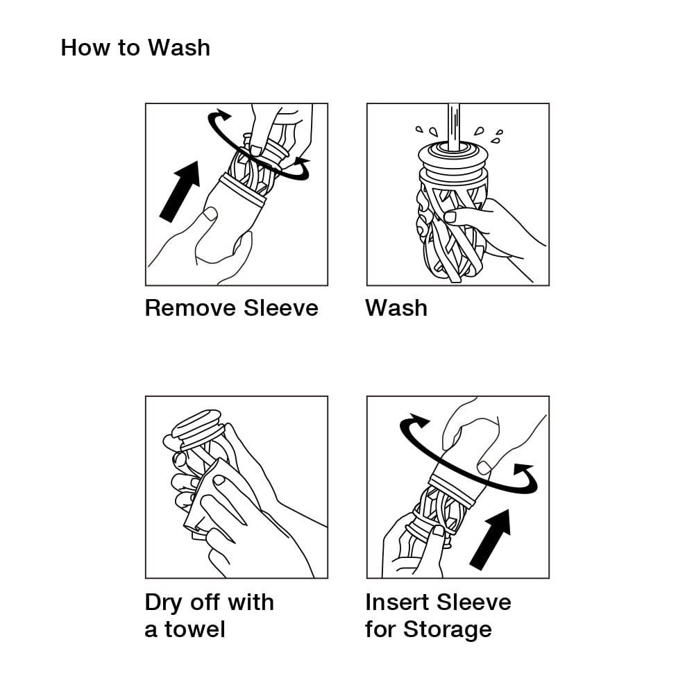 A betétet minden használat előtt és után vedd ki a tokból, majd langyos, enyhe szappanos vízzel és fertőtlenítő játék-tisztítóval mosd el. Hagyd teljesen megszáradni, majd hintőporozd be, hogy megőrizze selymes tapintását. Hűvös, száraz helyen, pormentesen tárold.